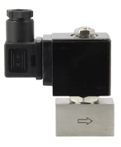 Клапан электромагнитный соленоидный двухходовой нержавеющий DN.ru-DHSE на высокое давление (НЗ) Ду8-2 (1/4 дюйм), Ру70 уплотнение - PTFE, резьба G, с катушкой 24В