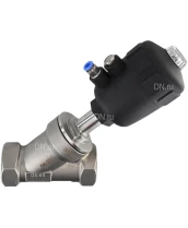 Клапан отсечной пневматический DN.ru VSP3241P-T-1PNC Ду32 Ру25, корпус - нержавеющая сталь SS316, резьбовой, Y-образный, корпус привода - пластик с сертификатами качества. Доставка. Гарантия. В наличии! Звоните!