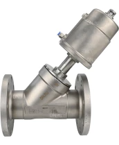 Клапан отсечной пневматический DN.ru VSP3232PV-F-1PNC Ду100 Ру16, корпус - нержавеющая сталь SS316, фланцевый, Y-образный, корпус привода - нержавеющая сталь CF8M