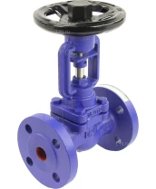 Клапан запорный сильфонный DN.ru VSO1121M-F-S Ду20 Ру16, фланцевый, корпус - чугун GG25, уплотнение - металл, управление - штурвал