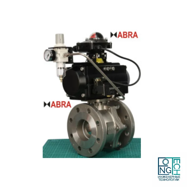 Кран шаровый полнопроходной фланцевый нержавеющий из AISI316/PTFE, 2PC, ABRA-BV-41, DN15-300, PN16/40 с пневмоприводом двойного или одинарного действия на 6 бар / SS316