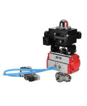 Кран шаровой DN.ru BV3232P(4pc)-SP-3WL-T-ISO-H Ду20 Ру63, стандартнопроходной, четырехсоставной, корпус - нержавеющая сталь 316, уплотнение - PTFE, внутренняя резьба, с пневмоприводом PA-SA-052, пневмораспределителем 4V320-10 220В, БКВ APL-410N Ex