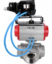 Кран шаровой DN.ru BV3232P(4pc)-SP-3WL-T-ISO-H Ду65 Ру40 стандартнопроходной 3-ходовой, L-тип, нерж. сталь SS316, внутренняя резьба, PTFE, с пн.приводом DN.ru PA-DA-083 двойного действия и электропневматич. позиционером DN.ru YT-1000RSN без обратной связи с сертификатами качества. Доставка. Гарантия. В наличии! Звоните!