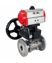 Кран шаровой DN.ru BV3131P(3pc)-FP-F-ISO-H Ду100 Ру16 трехсоставной из нержавеющей стали SS304, фланцевый, уплотнение - PTFE, полнопроходной с пневмоприводом DN.ru PA-DA-130 и ручным дублером MON3-700-T38-ISO Нижний Новгород