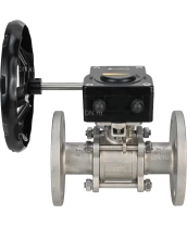 Кран шаровой DN.ru BV3232P(3pc)-FP-F-ISO-H Ду50 Ру40 трехсоставной из нержавеющей стали SS316, фланцевый, уплотнение - PTFE, полнопроходной с ISO-фланцем и редуктором DN.ru HAM RQN1-180Z-T40