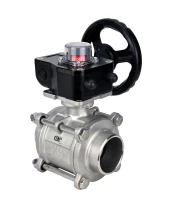 Кран шаровой DN.ru BV3232P(3pc)-FP-W-ISO-H Ду10 Ру63 полнопроходной двухходовой, нержавеющая сталь SS316, под приварку, уплотнение - PTFE, с ISO фланцем и редуктором DN.ru HGB RQN1-180Z с индикатором положения с сертификатами качества. Доставка. Гарантия. В наличии! Звоните!