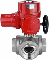 Кран шаровой DN.ru BV3232P(4pc)-SP-3WL-T-ISO-H Ду20 Ру63 стандартнопроходной трехходовой L-тип, нержавеющая сталь SS316, внутренняя резьба, уплотнение - PTFE, с 1/4-оборотным электроприводом DN.ru QT-EX-005M-O2-380VAC-У1 Нижний Новгород