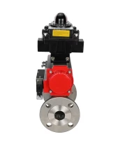 Кран шаровой DN.ru BV3232P(3pc)-FP-F-ISO-H Ду25 Ру40, трехсоставной полнопроходной фланцевый, нержавеющая сталь SS316, уплотнение - PTFE, с пневмоприводом PA-DA-052 двойного действия, с пневмораспределителем 4М310-08 220В NAMUR, с БКВ APL-410N EX