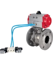 Кран шаровой DN.ru BV3232P(2pc)-FP-F-ISO-H Ду15 Ру40, полнопроходной фланцевый, нержавеющая сталь SS316, уплотнение - PTFE, с пневмоприводом PA-DA-052 двойного действия, с пневмораспределителем 4V320-10 220В с сертификатами качества. Доставка. Гарантия. В наличии! Звоните!