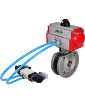 Кран шаровой DN.ru BV3232P-FP-Fb-ISO-H Ду32 Ру16, полнопроходной межфланцевый, нержавеющая сталь SS316, уплотнение - PTFE, с пневмоприводом PA-DA-052 двойного действия, с пневмораспределителем 4V320-08 220В