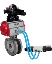 Кран шаровой DN.ru BV3232P-FP-Fb-ISO-H Ду25 Ру16, полнопроходной межфланцевый, нержавеющая сталь SS316, уплотнение - PTFE, с пневмоприводом PA-DA-052 двойного действия, с пневмораспределителем 4V320-08 220В, с БКВ APL-210N