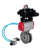 Кран шаровой DN.ru BV3232P-FP-Fb-ISO-H Ду25 Ру16, полнопроходной межфланцевый, нержавеющая сталь SS316, уплотнение - PTFE, с пневмоприводом PA-DA-052 двойного действия, с пневмораспределителем 4V320-08 220В, с БКВ APL-410N EX