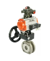 Кран шаровой DN.ru BV3232P-FP-Fb-ISO-H Ду32 Ру16, полнопроходной межфланцевый, нержавеющая сталь SS316, PTFE, с пневмоприводом PA-DA-052 двойного действия, с пневмораспределителем 4V320-08 220В, с БКВ APL-410N EX, с ручным дублером MON1-250-T26-ISO с сертификатами качества. Доставка. Гарантия. В наличии! Звоните!