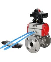 Кран шаровой DN.ru BV3232P(3pc)-FP-F-ISO-H Ду15 Ру40, трехсоставной полнопроходной фланцевый, нержавеющая сталь SS316, уплотнение - PTFE, с пневмоприводом PA-SA-065 с возвратными пружинами, с пневмораспределителем 4V320-10 220В, с БКВ APL-210N с сертификатами качества. Доставка. Гарантия. В наличии! Звоните!