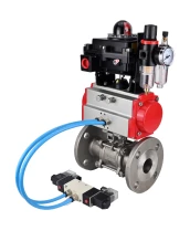 Кран шаровой DN.ru BV3232P(3pc)-FP-F-ISO-H Ду80 Ру25, трехсоставной полнопроходной фланцевый, нержавеющая сталь SS316, уплотнение - PTFE, с пневмоприводом PA-DA-105, с пневмораспределителем 4V320-08 220В, с БКВ APL-410N EX, с БПВ AFC2000 с сертификатами качества. Доставка. Гарантия. В наличии! Звоните!