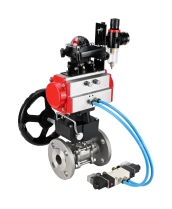 Кран шаровой DN.ru BV3232P(3pc)-FP-F-ISO-H Ду100 Ру16, трехсоставной полнопроходной фланцевый, нержавеющая сталь SS304, PTFE, с пневмоприводом PA-DA-130, с пневмораспределителем 4V320-08 220В, БКВ APL-210N, ручным дублером MON3-700-T38-ISO, БПВ AFC2000 Нижний Новгород