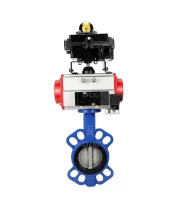 Затвор дисковый поворотный DN.ru WBV1413E-2W-Fb-H Ду80 Ру16, корпус - чугун GGG50, диск - чугун GGG40, уплотнение - EPDM, с пневмоприводом DN.ru PA-DA-083 двойного действия, пневмораспределителем 4М310-08 24В NAMUR, БКВ APL-410N EX
